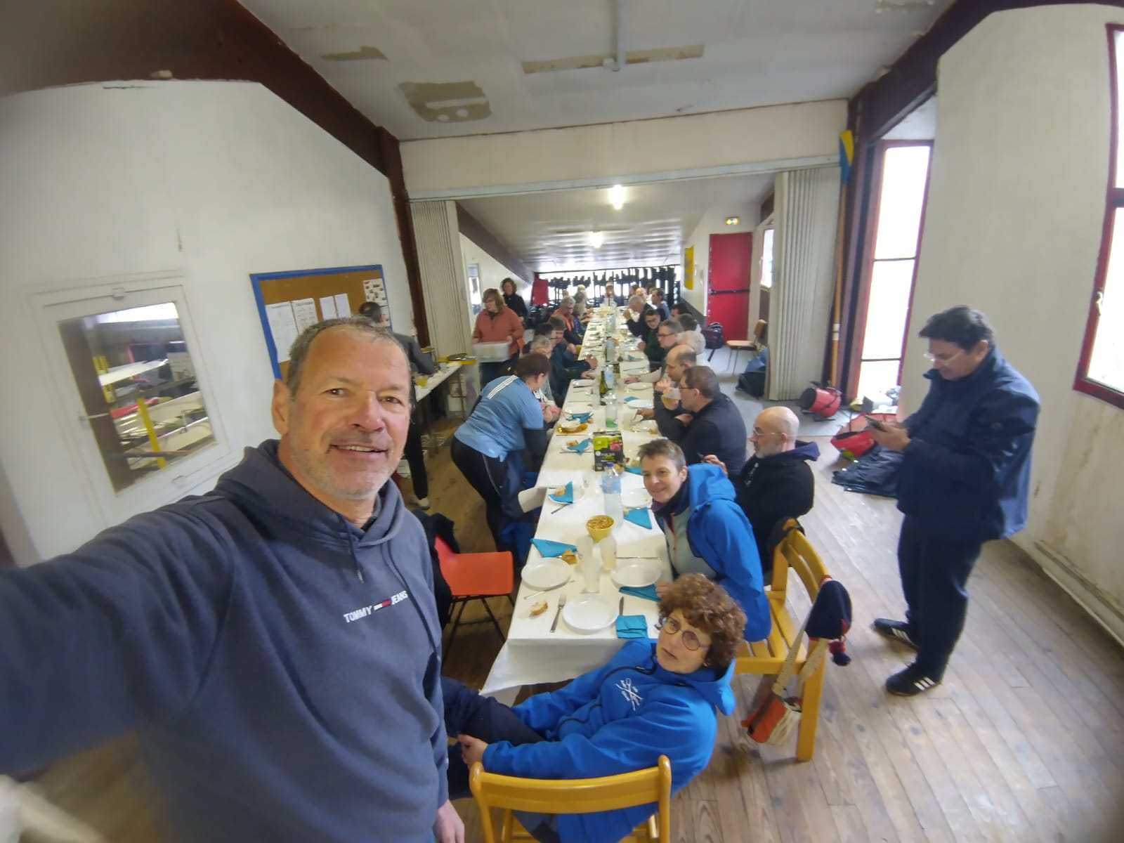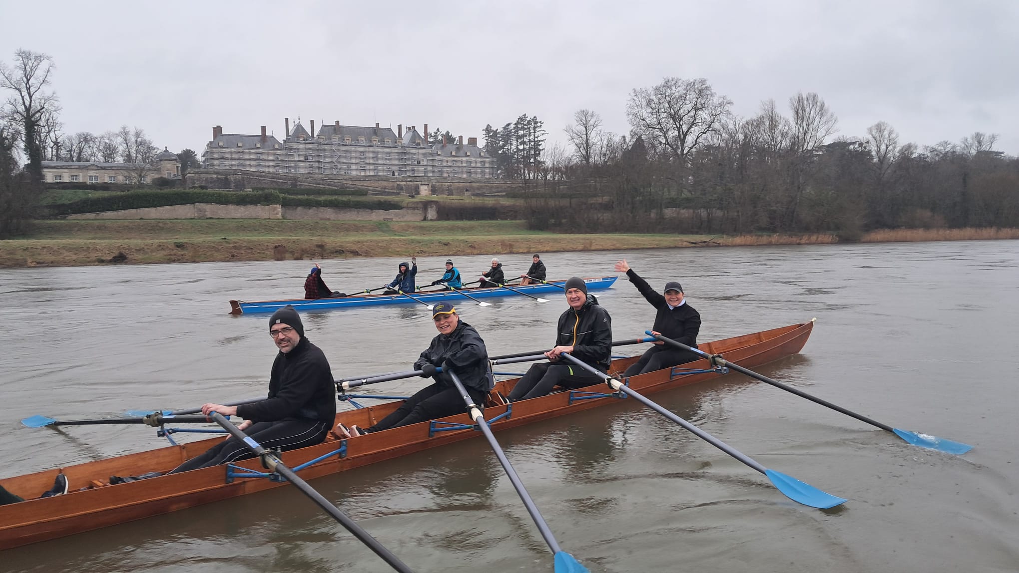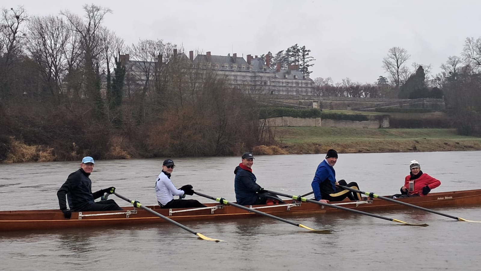 Six participants du club : Chantal, Arthur, Elles, Jérôme, Pierre et Richard se sont réchauffés en ramant à contre courant, pour compenser le temps froid et humide.