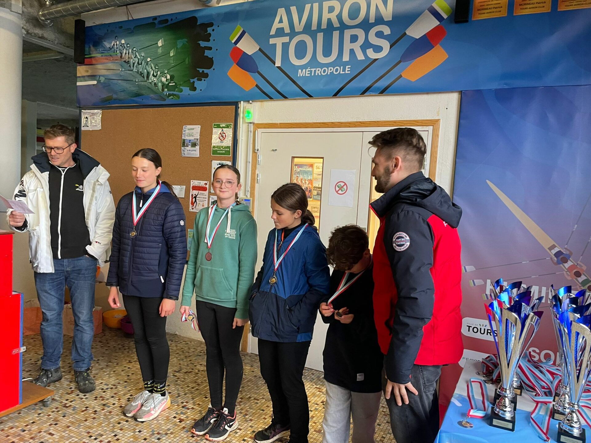 Sophie a rassemblé les impressions du 4x Master Féminin du matin, composé de Stéphanie, Sophie, Dominique et Elisa : » Malgré une pluie incessante, notre équipage féminin master, classé en senior avec Elisa à son bord, a brillé hier lors de la tête de rivière de Tours 💪✨ / 🔥 Échauffement collectif à l’ergo pour lancer la journée / 🚀 Départ lancé réussi, avec un placement impeccable / 📣 Annonce de Stéphanie aux 1000m, puis d’Elisa à la bouée du virage / 🔄 Synchronisation parfaite lors de la manœuvre / 🌊 Retour souple avec le courant, cadence régulière et solide / 🏁 Arrivée sans faiblir, preuve d’une endurance et d’un esprit d’équipe exemplaires / Bilan : Un vrai moment de cohésion et de détermination, transformant une journée pluvieuse en victoire collective
