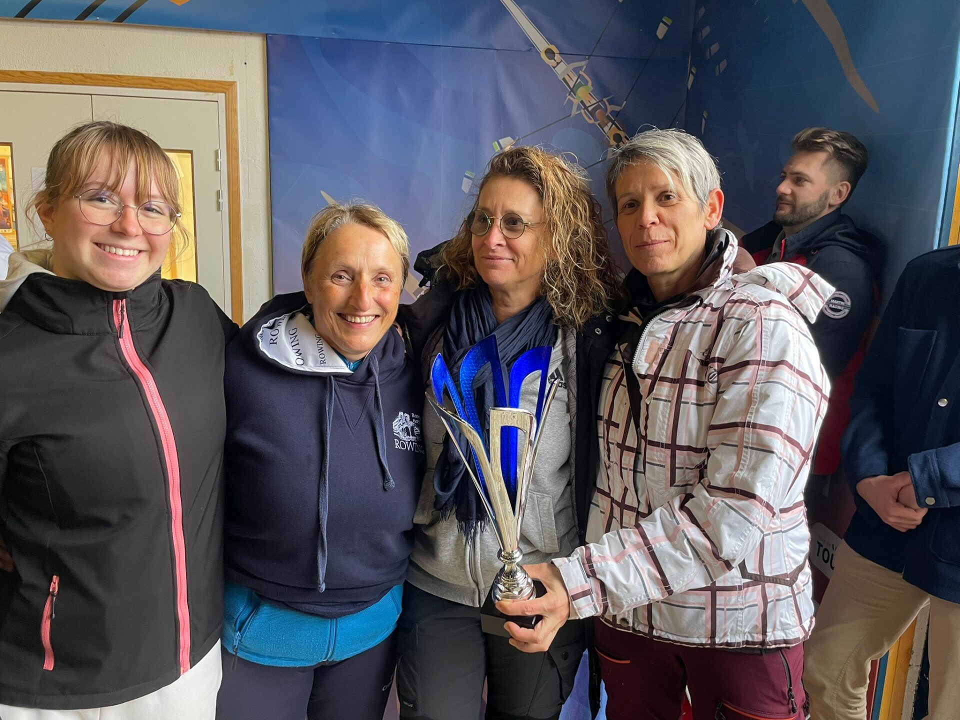Quant à l’après-midi, toujours avec Elisa en remplacement de Valérie : c’est une coupe qui a été décrochée 🏆 : » 🚣♀️ Départ puissant, cadence solide, et un bord à bord haletant avec un huit de pointe pendant 600m… / 🔥 À 250m de l’arrivée, l’annonce : passage en 3/4 de coulisse pour un enlevage total, test grandeur nature. / ⏱️ Verdict : 3’45” – en deçà des attentes de Yves, donc mission réussie 💪. / 🌟 Merci à Elisa, notre renfort de dernière minute, qui a remplacé Valérie blessée avec brio 👏 «