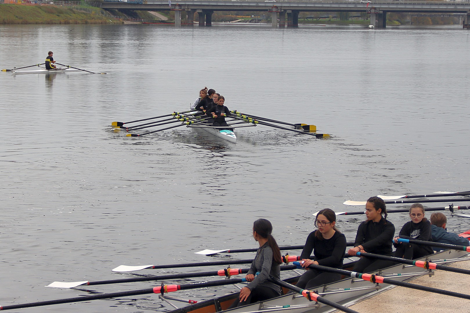C’est dans la bruine que les rameurs de tous âges de l’Aviron club de Bourges se sont opposés aux équipes régionales le dimanche 16 novembre 2025, encadrés par Yves et Pierre, ainsi que les précieux parents accompagnateurs : Sophie, Caroline, Virginie, Delphine, Mickael…